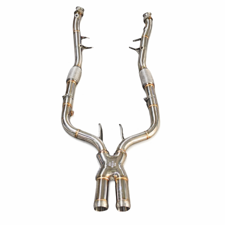 Gefertigt aus hochwertigem Edelstahl und präzise verschweisst, bieten die Downpipes eine perfekte Passform sowie hohe thermische Belastbarkeit. Die hitzebeständige Ummantelung sorgt zusätzlich für optimale Wärmeisolierung im Motorraum.